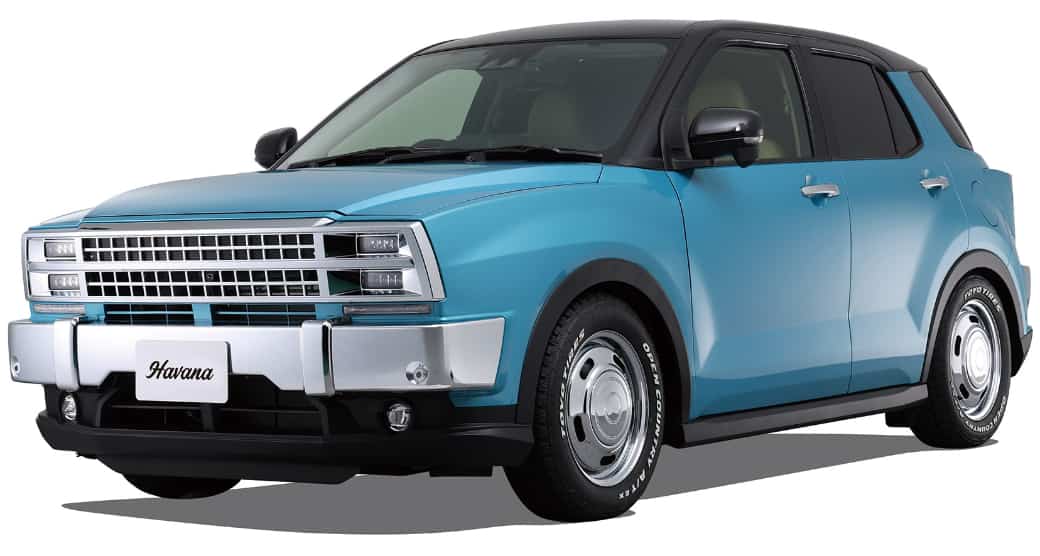 Havanaは、ネオクラシックなイメージと、60年代も90年代も現代も超えた、唯一無二の個性的なデザインで「人とは被らない」究極のカスタマイズを実現。トヨタ ライズをベースとする遊び心溢れるレトロな小型SUVが「Havana」となっている。