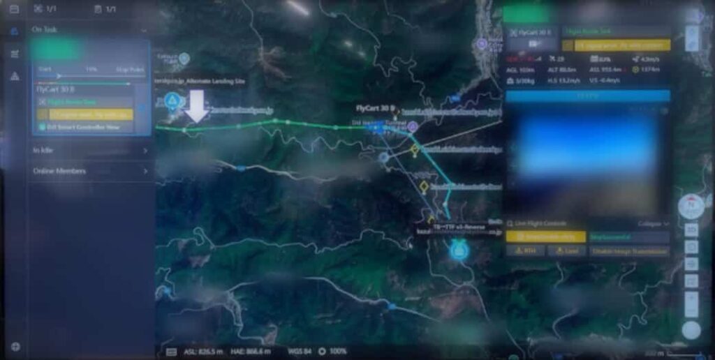 より具体的には、山間部特有の複雑な地形を通過する難易度の高いルートを飛行。この高度な飛行を成功させるため、以下の安全対策と技術を活用した。