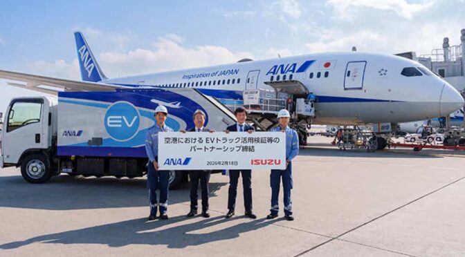 全日本空輸( ANA / 本社:東京都港区、代表取締役社長:井上 慎一 )と、いすゞ自動車( 本社:神奈川県横浜市、代表取締役 社長COO:南 真介 )は、2050年のCO2排出量実質ゼロという共通目標に向け、航空機地上支援機材( GSE )の検証を行うパートナーシップを締結した。