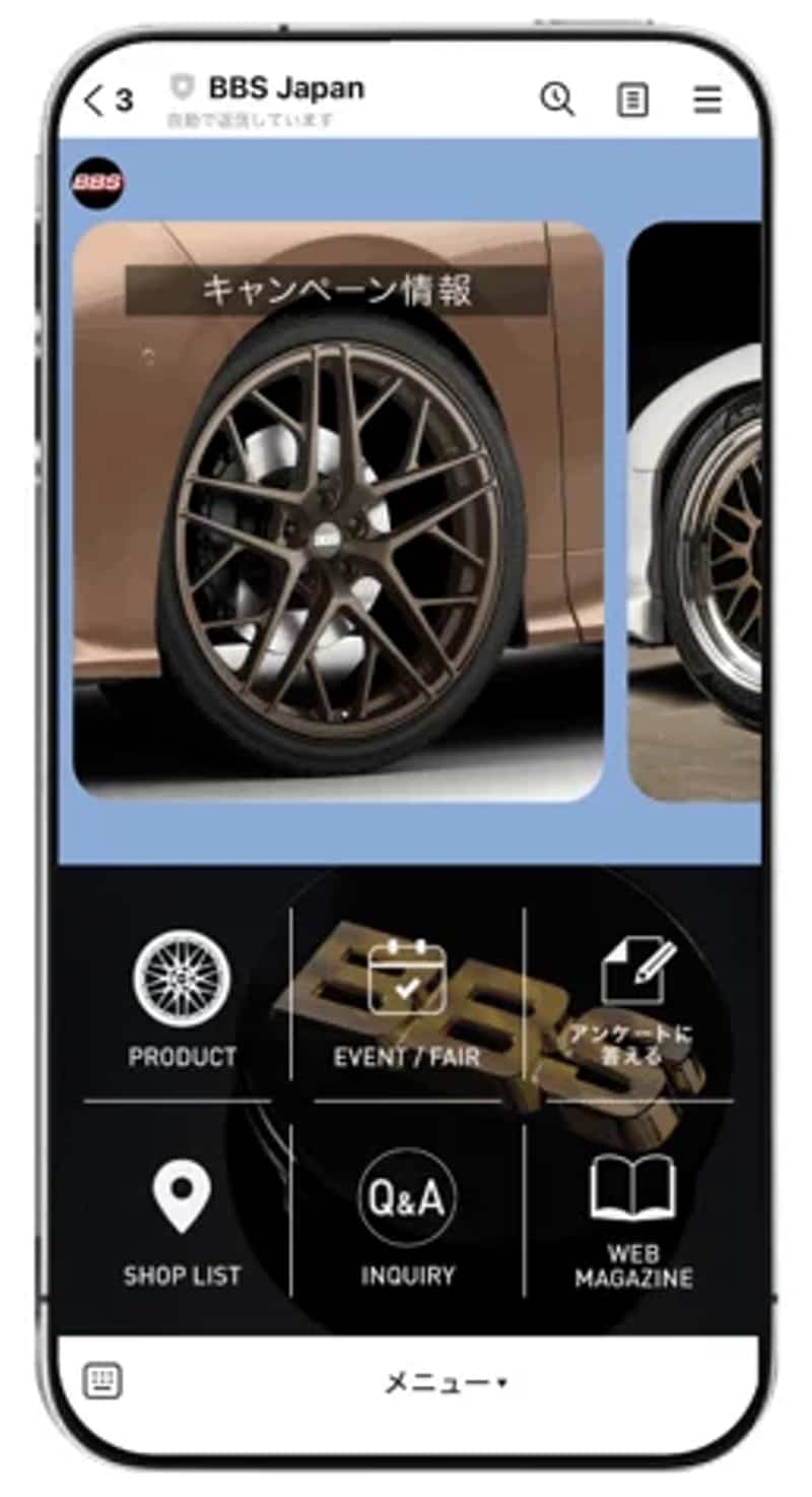 これを記念して友だち登録を行った対象者に、同アカウントを通じてBBS鍛造ホイールの最新情報をはじめ有益なコンテンツを定期的に配信。将来的にはBBS鍛造ホイールオーナーだけが加入できるTANZO CLUBとの連携を図り、更なるエンゲージメント強化に努めていく。また、来年開催予定の「東京オートサロン2026」BBSジャパンブースにてキャンペーンを実施する。