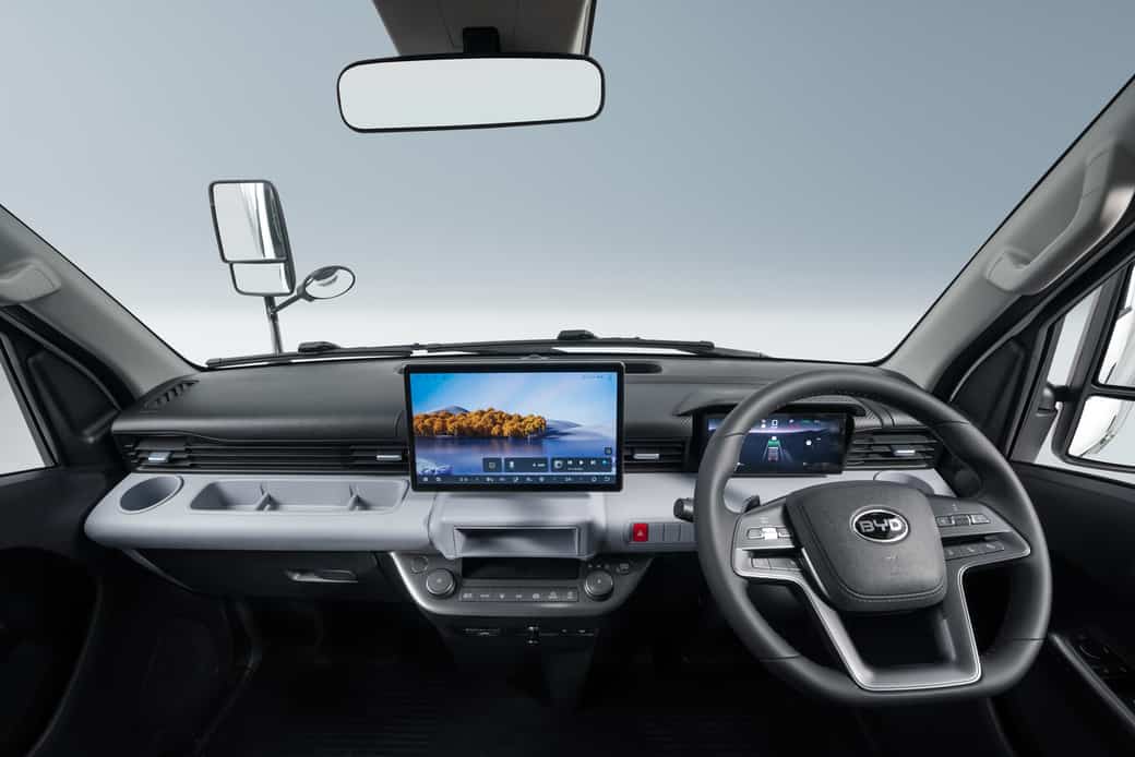 「T35」は、普通免許で運転可能な日本の法規・寸法に対応した専用設計の電気トラック。BYD独自のLFP(リン酸鉄リチウムイオン電池)ブレードバッテリーを採用し、高い安全性と安定した航続性能を両立。配送や営業などの商用用途に加え、趣味やレジャーなどのライフスタイルシーンにも幅広く活用できるEVとして開発された。