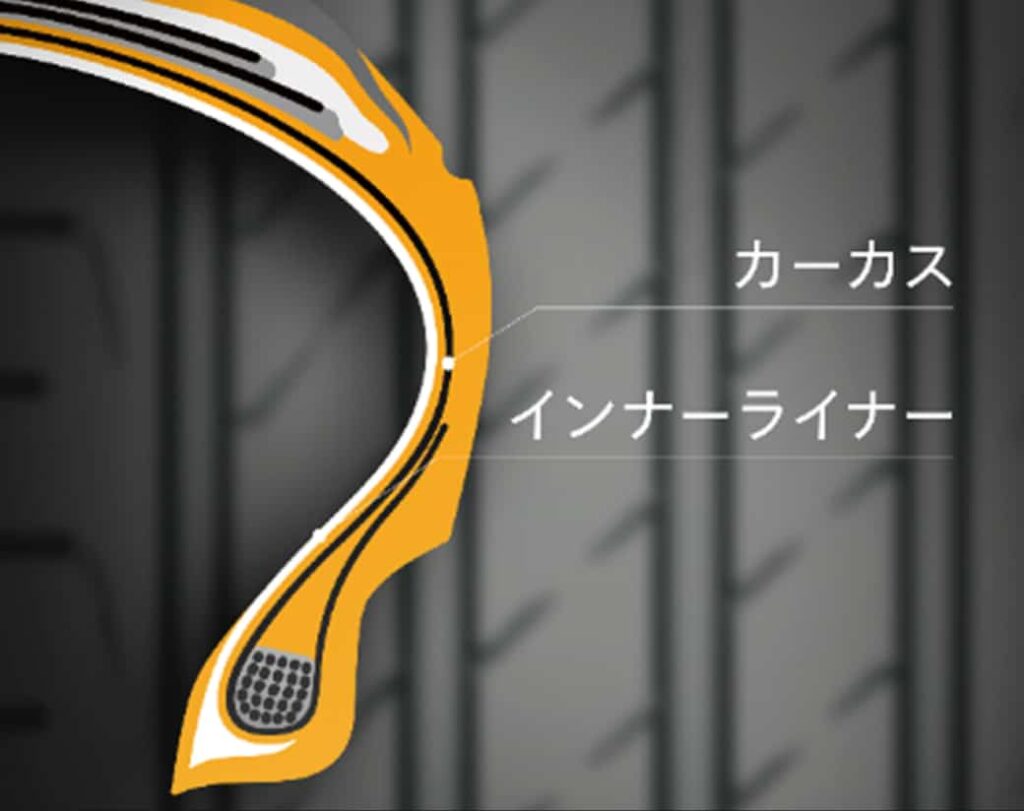 そこで低ヒステリシス素材を、カーカスおよびインナーライナーに採用することで、エネルギー損失を抑制し、転がり抵抗を低減。その結果、燃費向上やEVの航続距離延長を実現しながら、耐久性や剛性を損なうことなく高い走行性能を実現した。
