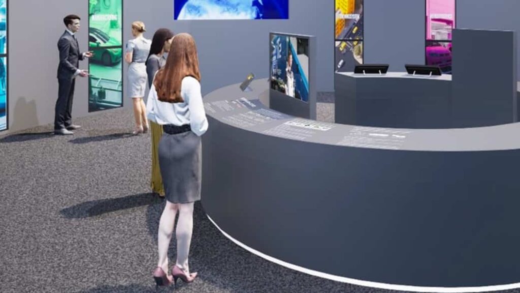 ブース内に立ち上げていくディスプレイでは「物流」「公共交通」「自動車製造」「走行支援」「モビリティサービス」「交通インフラ」という6つの未来の展望を体験できるコンテンツを展示。