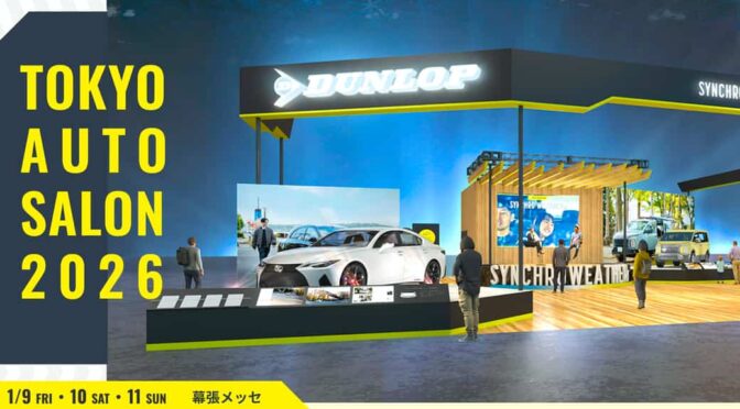 DUNLOP (社名:住友ゴム工業(株)、社長:山本悟)は、2026年1月9日から11日まで千葉県・幕張メッセで開催されるカスタムカーイベント『TOKYO AUTO SALON 2026』にDUNLOPブースを出展する。
