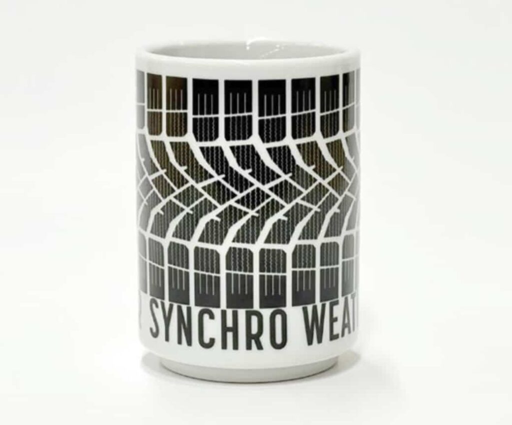 トレッドパターン(タイヤ表面の溝やブロック配置)柄の湯吞オリジナルグッズ「SYNCHRO WEATHER」