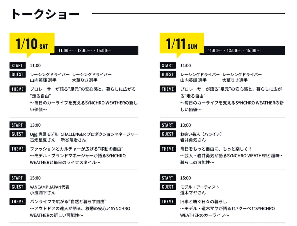 12月15日発刊のBRUTUS本誌に、「SYNCHRO WEATHER」とのコラボレーション記事を掲載する。そこで実際に掲載された3名の著名人を招待して、トークショーを実施。3名それぞれのバックボーンをメインに「SYNCHRO WEATHER」のある生活について語って貰う。