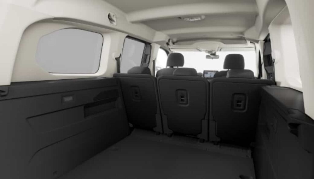 これにより最大2,693ℓの大容量ラゲッジスペースを確保し、標準ボディサイズの5人乗りモデル(最大2,126ℓ)を大きく上回る積載力を実現した。