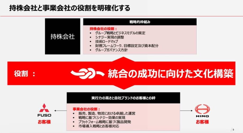但し※日野の羽村工場については、2025年6月10日付発表の通りトヨタへ移管する。また同じく間接機能でも、機能集約化・重複領域の最適化を進め、コスト効率化と業務の卓越性を両立させる。
