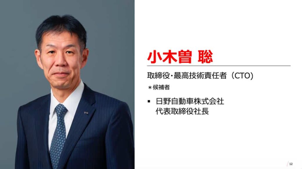 このポジションは、日野の代表取締役社長を務める小木曽聡氏が就任予定であり、同時に取締役執行役員に指名した。