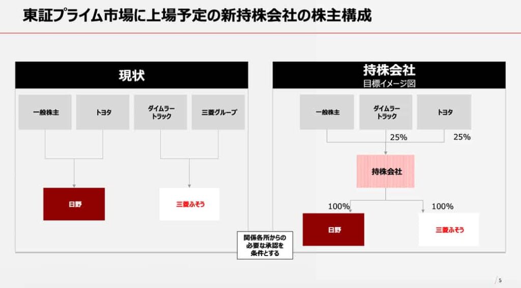 ・持株会社は日野と三菱ふそうの株式を 100%保有する予定