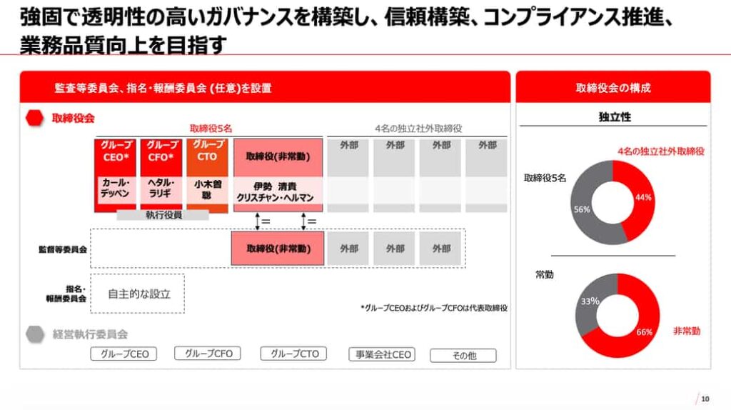 ・役員体制: 本日時点で選任を予定しているのは以下の通り