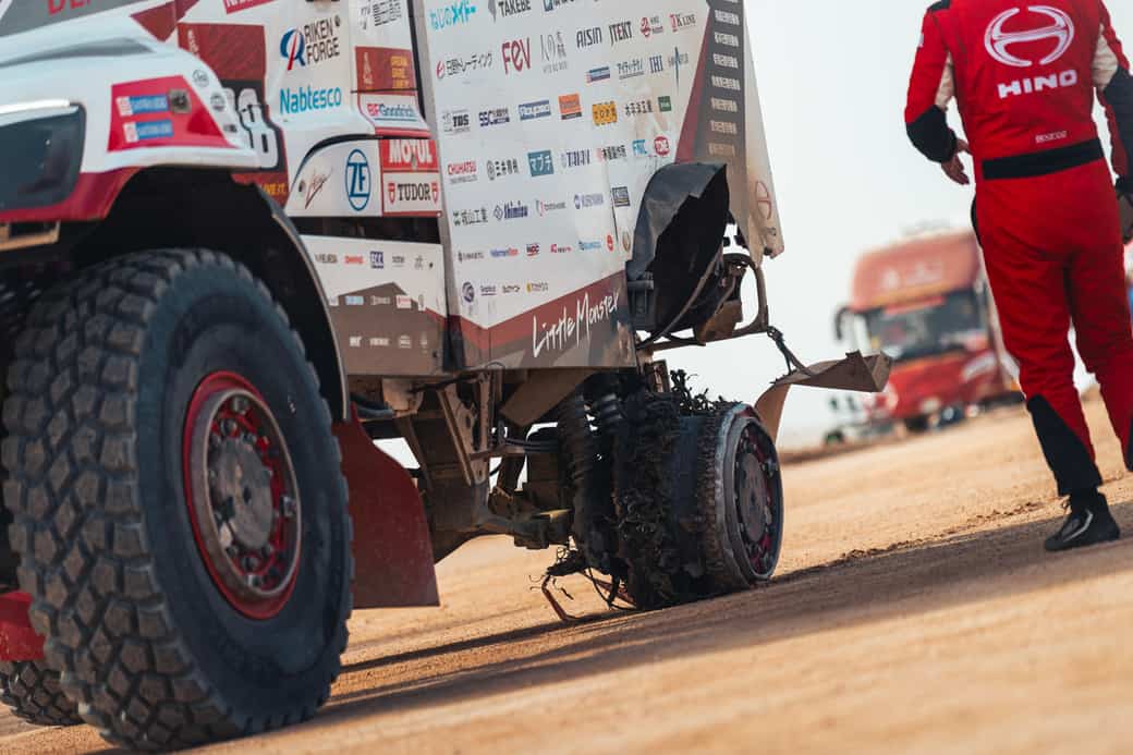 砂丘ステージでの転倒、車内で選手同士がコミュニケーションを取るためのインカムの不調、2025年大会でも頭を抱えたトランスファの破損、追い打ちをかけるような最終日のタイヤバーストなど日を重ねるごとにチームの粘り強さが試される展開となった。