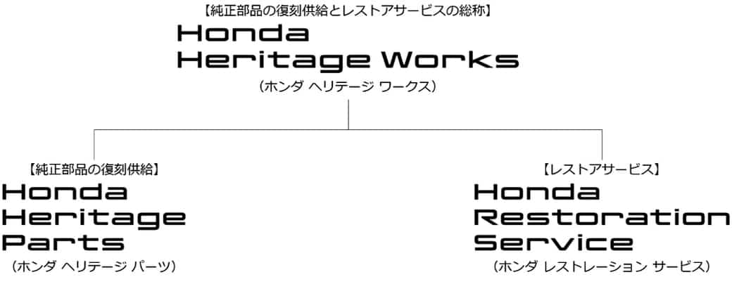 Honda Heritage Worksは、販売終了となった一部の純正部品を復刻し、新たに供給する「Honda Heritage Parts(ホンダ ヘリテージ パーツ)」と、その部品を一部に活用した新たなレストアサービス「Honda Restoration Service(ホンダ レストレーション サービス)」の2つで構成される新ヘリテージサービス。