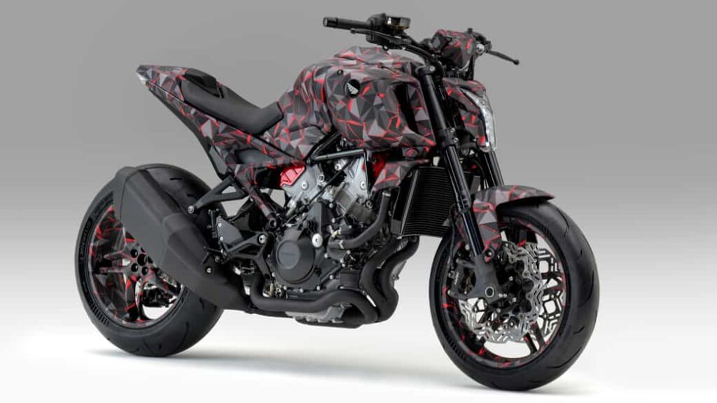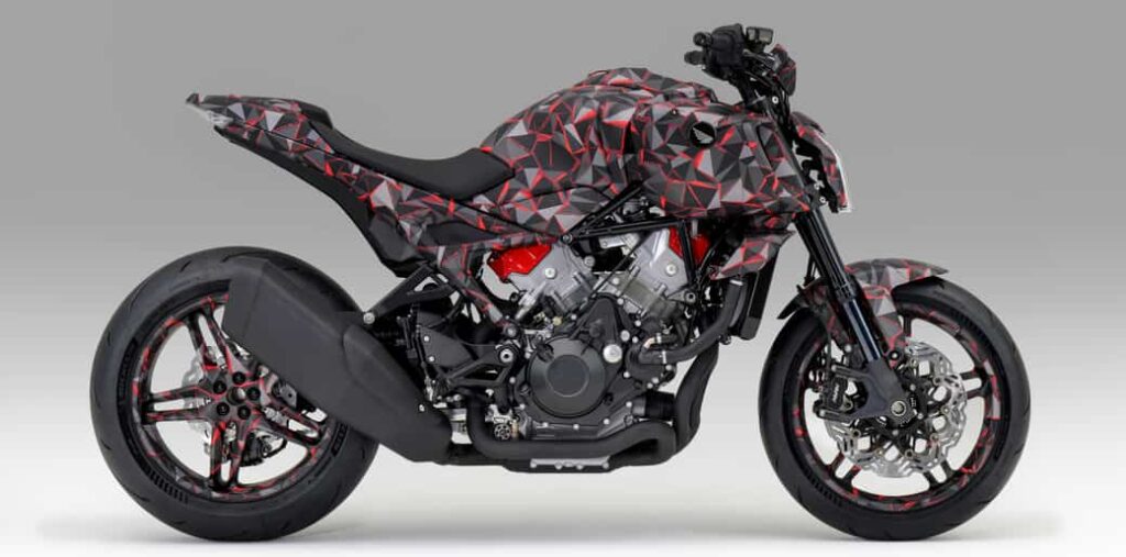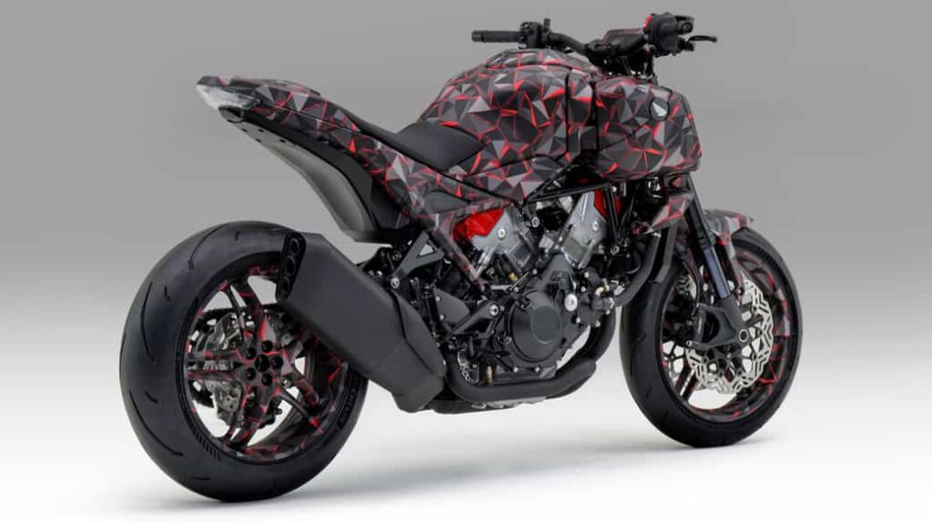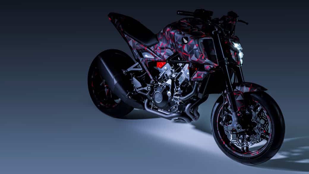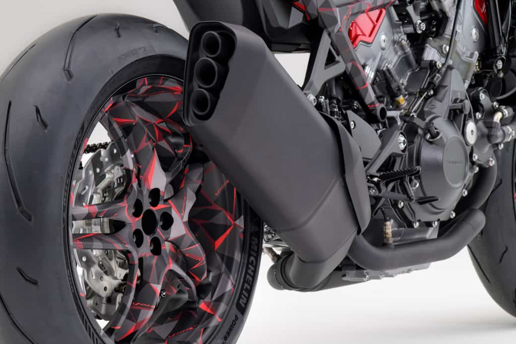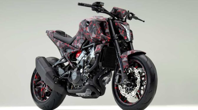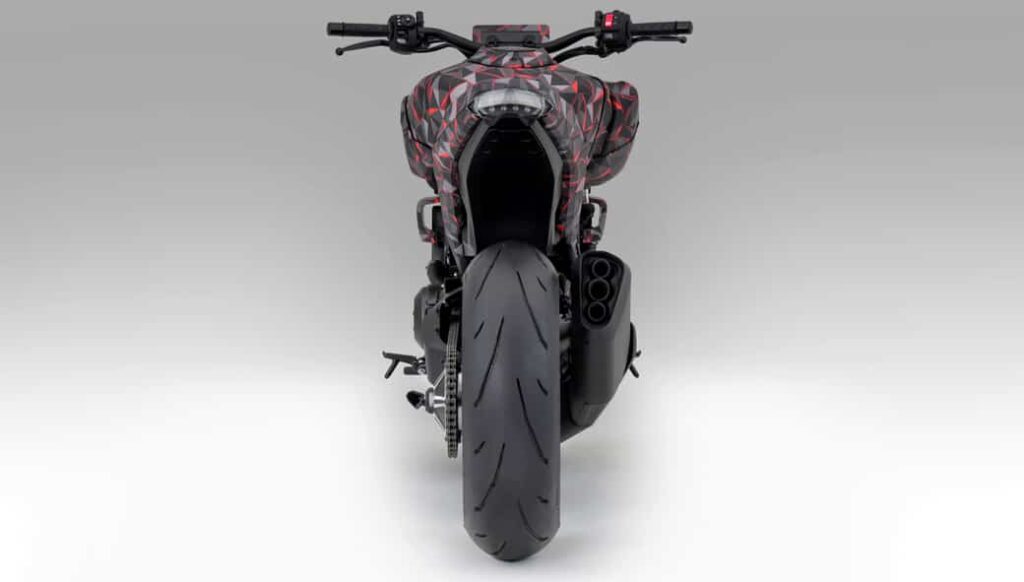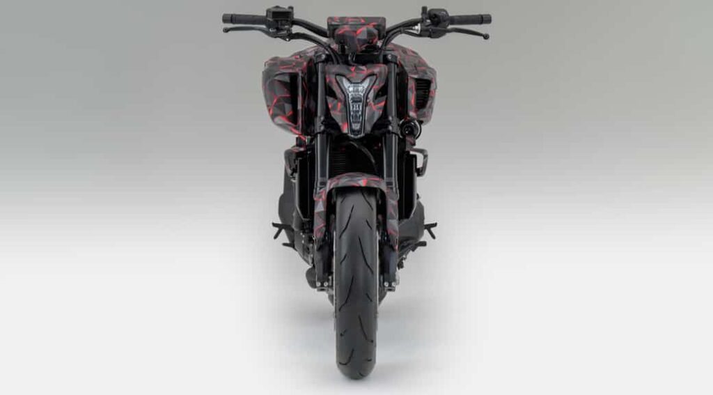 エンジンは、昨年EICMA 2024で世界初公開した水冷75度Ⅴ型3気筒エンジンをそのままに、排気量を900ccとし、スリム&コンパクトを追求。二輪車として世界初※の電子制御過給機の採用により、エンジンへの過給を任意にコントロールすることで、低回転からハイ・レスポンスなトルクを実現。これにより、900ccの排気量でありながら1200cc相当のパフォーマンスを実現し、環境性能にも貢献する仕様を目標に掲げていた。