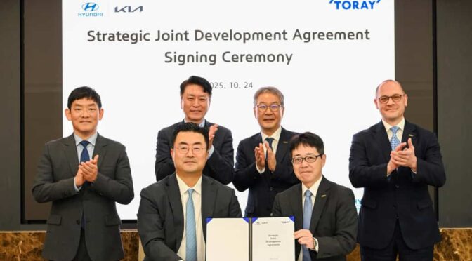 Hyundai Motor Group(ヒョンデ モーター グループ/本社:韓国ソウル、CEO:ホセ・ムニョス)と東レ(本社:東京都中央区、代表取締役社長:大矢光雄)は、次世代モビリティに於ける新たな基準の確立を目指し、先進素材及び部品のイノベーションに向けた戦略的共同開発契約(Strategic Joint Development Agreement)を締結した。