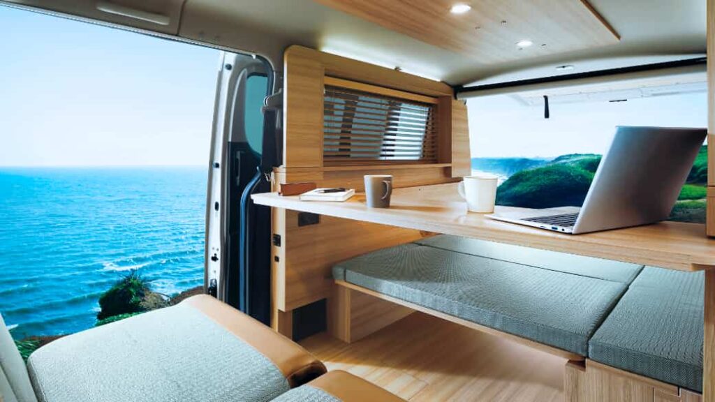 MYROOMのコンセプトはそのままに、日産に於いて「1人でゆったり、2人でぴったりくつろげる」と謳うナチュラルで洗練された空間を提供するのがNV200バネット MYROOM。