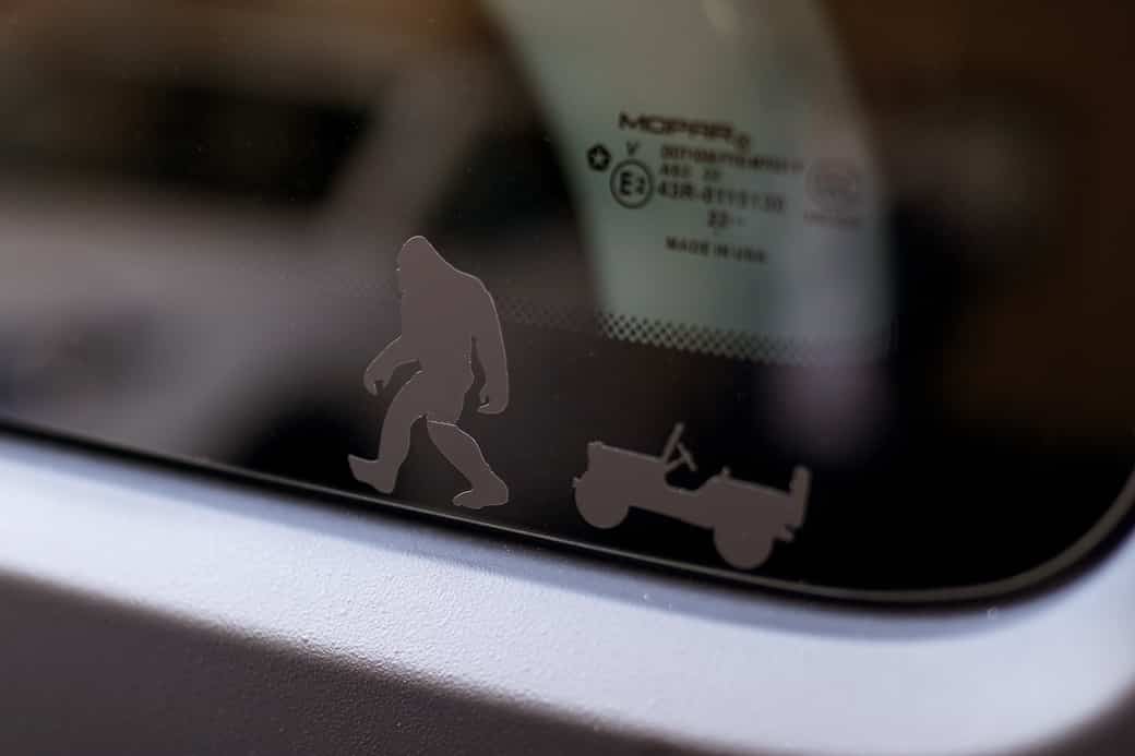 これらのデカールは、米国のプロダクトデザインチームと共同で制作した。左リアガラスには、ジープの原点ともいえるWillys MB(ウィリス エムビー)と雪男が並んで歩くシルエットを施すなど、遊び心溢れるディテールも加えている。