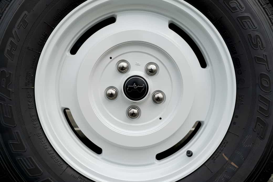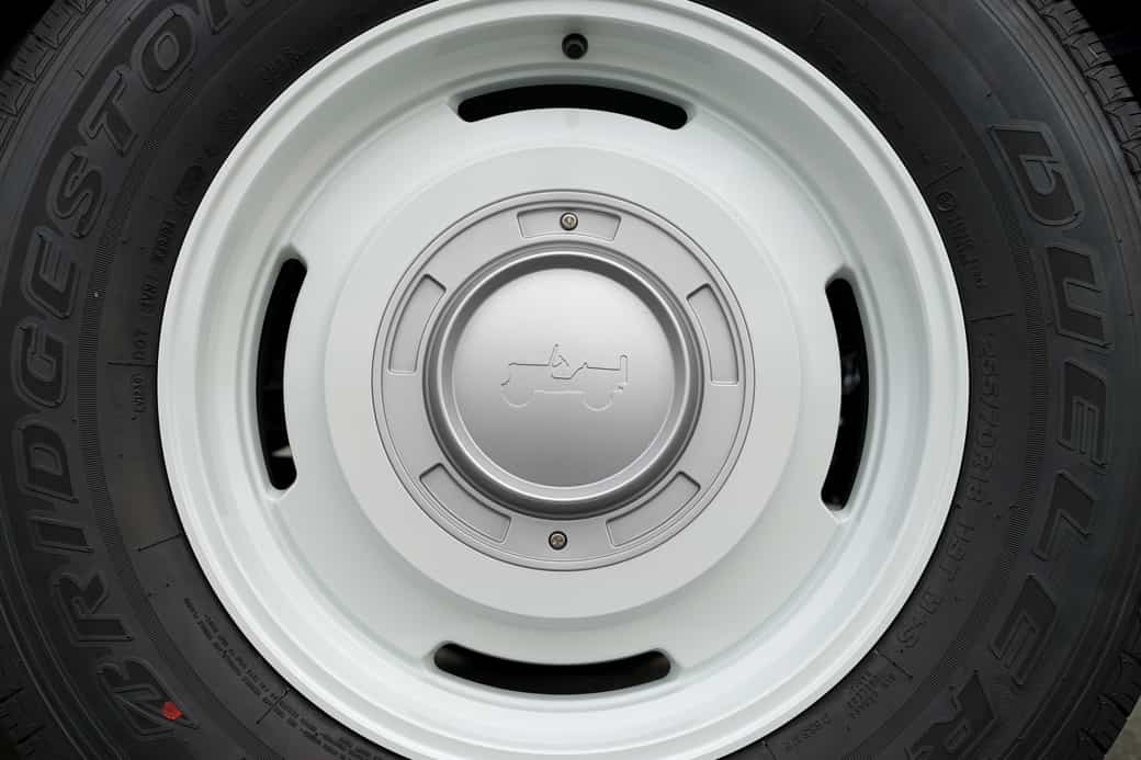 一方、シルバーの大型キャップを装着すると、力強い存在感を放つ。いずれのセンターキャップにも、Willys MBのシルエットが刻印されている。