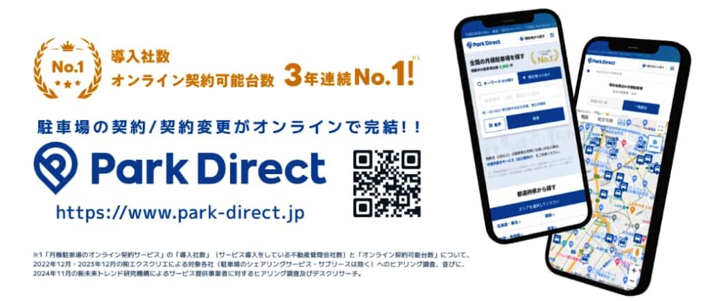 そんな「Park Direct」は、月極駐車場探しから契約手続き、賃料等費用の支払いまで全てオンラインで完結するサービスで最短即日からの利用が可能。