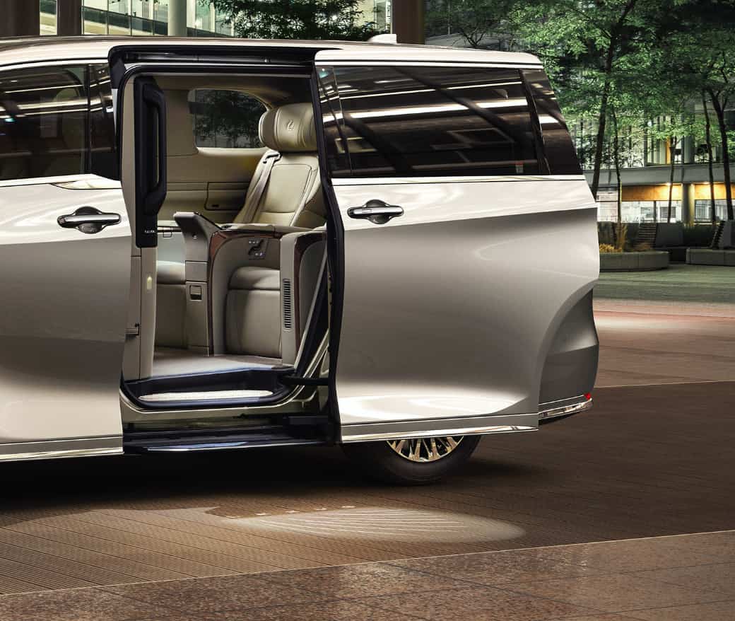 車内へ誘うような動きのあるイルミネーションで足元を照らすことで、安全性の向上に寄与するとともに、乗員をやさしく迎え入れるもてなし感を表現した。