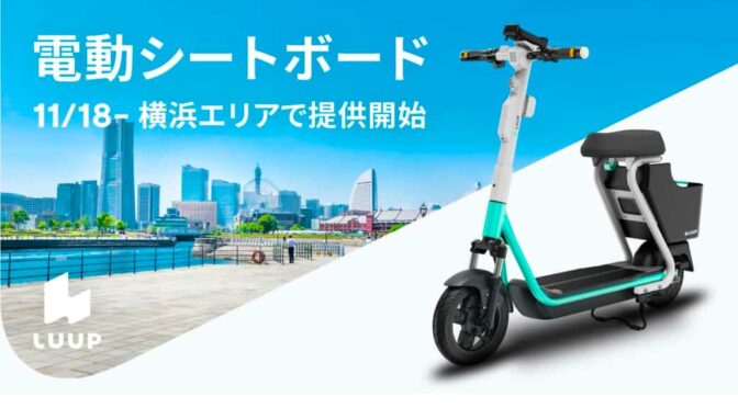 (本社:東京都品川区、代表取締役CEO:岡井大輝)は11月18日(火)より神奈川県横浜市のマイクロモビリティシェア「LUUP」のサービスへ座席・カゴ付きの特定小型原動機付自転車仕様の「電動シートボード」を導入・提供する。