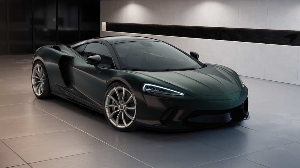 このビスポーク塗装は、ディープブラックに鮮やかなグリーンのペイントエフェクトを重ね合わせた特別なもの。更にサテン仕上げのGTシルバー10スポーク・タービン鍛造アロイホイールとグラファイトグレーのブレーキキャリパーを組み合わせた。