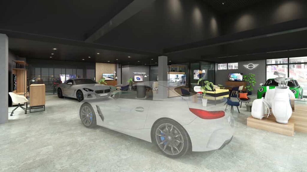 刷新拠点となるBMW Premium Selection箕面/MINI箕面は、アクセスと視認性に優れ、「いないち」として親しまれている国道171号線沿いに位置。ショールームの半分を2階まで吹き抜けとした開放的な空間を特徴として、BMWおよびMINIの世界観をより際立たせる展示環境を実現する。また展示場には50台以上の車両を並べ、顧客の様々な要望に沿った1台と巡り会える機会を醸成していくという。