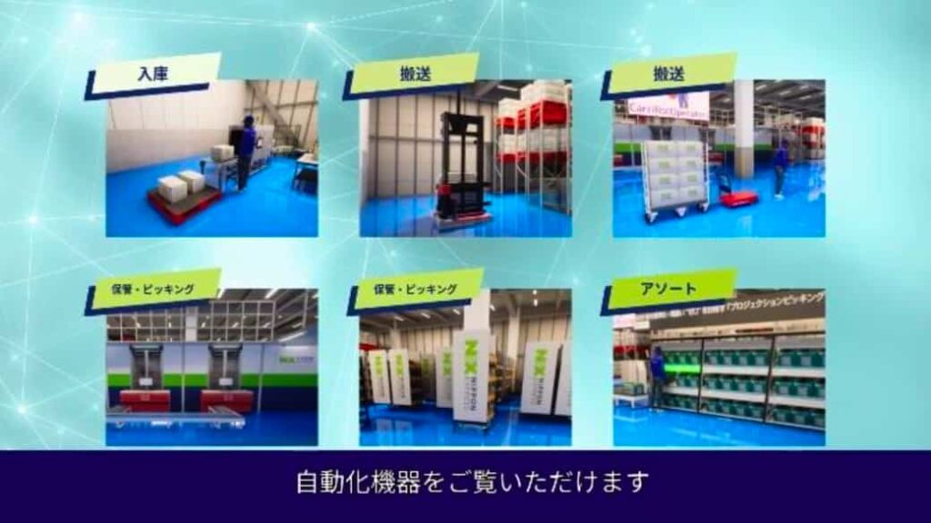 「デジタルショールーム」は、自社顧客がオンライン上でNXグループの物流拠点やサービスを体験できる場となる。構築した目的は施設の規模感やオペレーションの流れ、自動化機器の動作を、実際に現場を歩いているかのような感覚で、直感的に理解して貰うことを目的としており、その特徴は以下の通り。