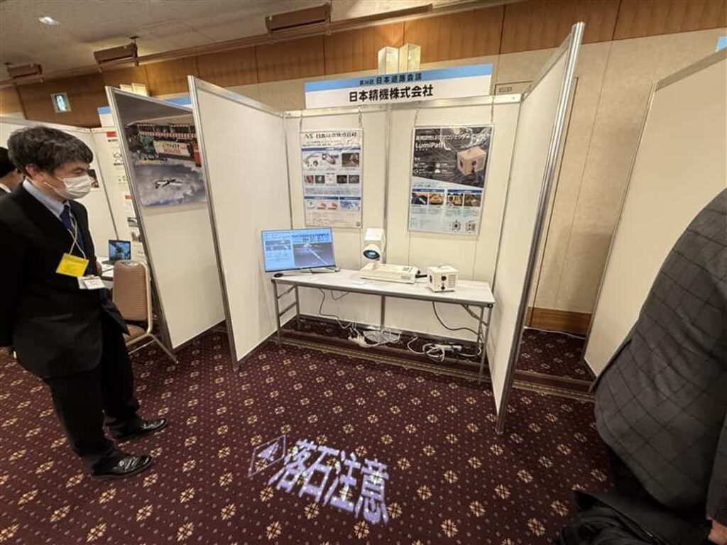 当該ブースで実証結果を紹介した日本精機 東京R&Dセンターの担当者は、「規制内侵入事故対策として路面投映技術の有効性を道路事業関係者の皆様に知ってもらうことができ、今後の広がりに期待しています。