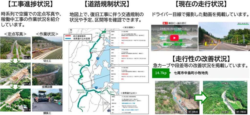 なお能越自動車道等の災害復旧の進捗については、以下URLの特設ページにて情報発信している。