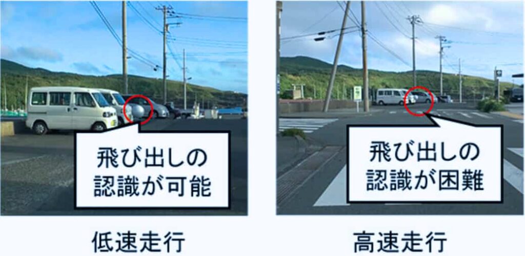 *図3. 走行速度が物体の飛び出しの認識に与える影響