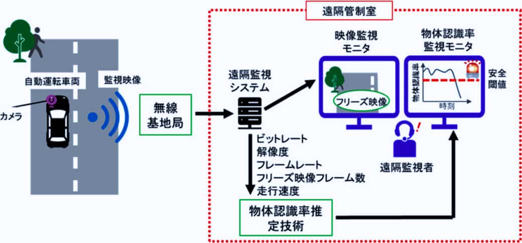 NTT(本社:東京都千代田区、代表取締役社長:島田 明)は11月7日、自動運転車両から遠隔管制室に送信される遠隔監視映像から、物体の飛び出しを認識することが可能な映像品質であるかを推定する「物体認識率推定技術」を確立した。