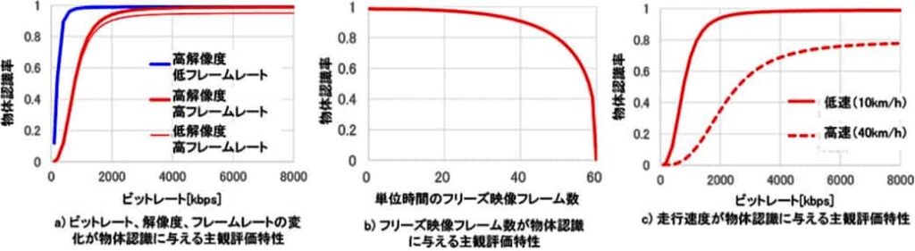そうしたなかで、このような画質低下やフリーズ映像フレーム数の増加が、どの程度発生すると物体の飛び出しを認識できなくなるのかの基準が、今以て明らかではなかった。