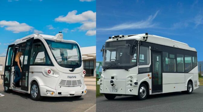 実証運転中の自動運転バスの走行に関して低速走行や急停車をする場合がある。