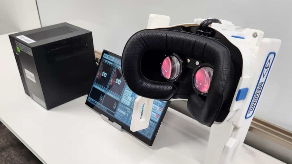 MEDEMILが開発した「MEDEMIL Drive®」は、ゴーグル内を90秒程度覗くだけで、視界の広さ・深視力・明暗コントラストなどの運転に必要な眼の機能に加え、認知・注意力・判断力などをAIを用いて複合的に評価し、運転能力を高速・簡便に測定することができる。