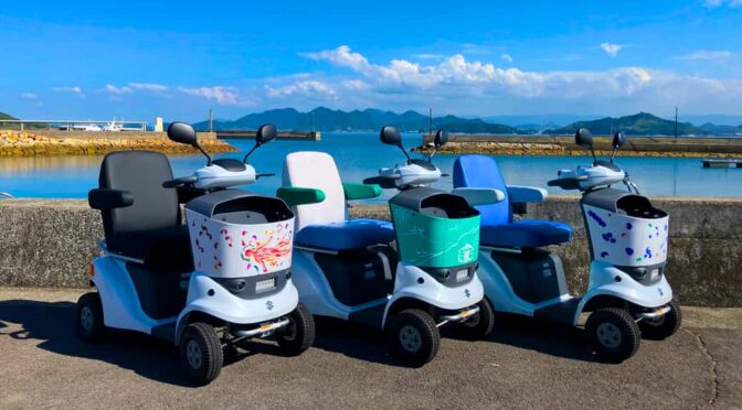 この取り組みは、10月1日(水)~11月30日(日)の期間で三豊市にセニアカーを無償提供し、粟島芸術家村事業で滞在する芸術家がセニアカーの加飾を行い、またIoT技術を活用した見守り用デバイスを搭載することで、安心して利用できる実証実験も開始する。