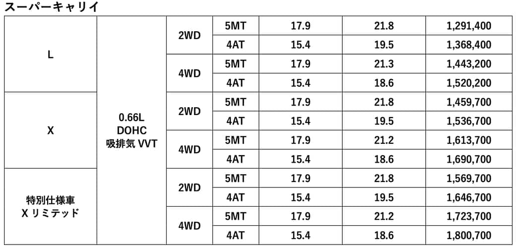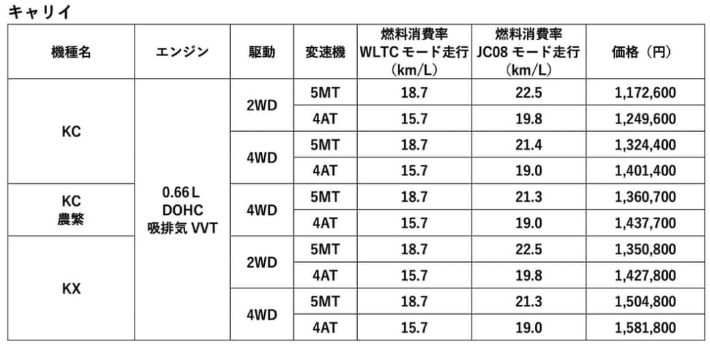 なお「キャリイ」シリーズは、経済産業省や国土交通省などが普及を推進する「サポカーS ワイド」、国土交通省による「ペダル踏み間違い急発進抑制装置(PMPD)認定車」に該当している。