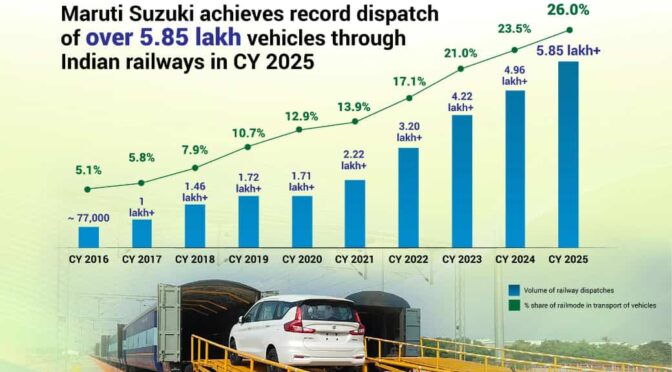 また、2025年6月にはハリヤナ州のマネサール工場でも鉄道引込線を開所。2025年暦年(1~12月)では過去最高となる58万台以上、累計では280万台以上の四輪車を鉄道で輸送してきた。