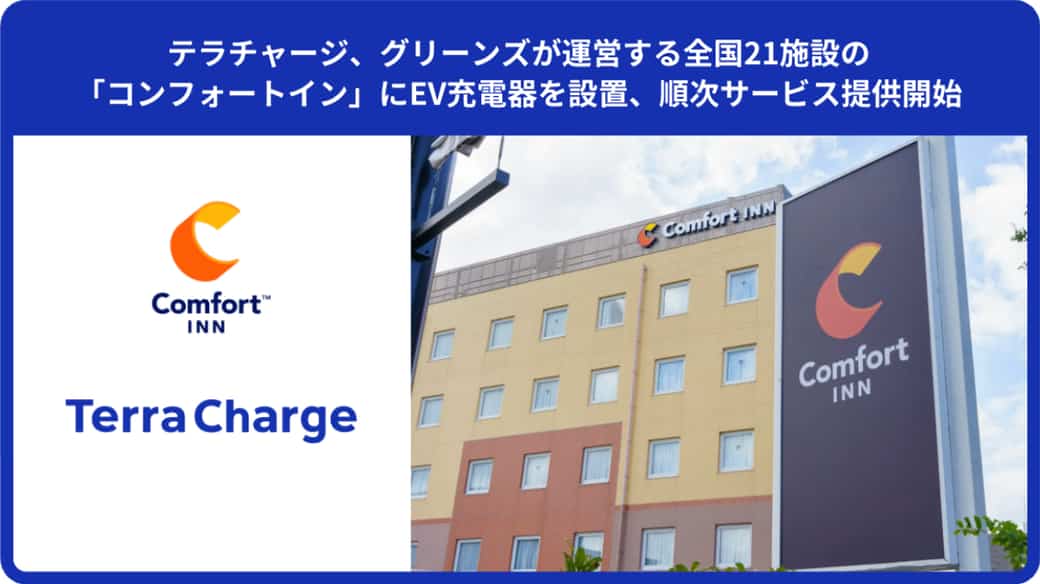 そこで両社は、ロードサイド型の「コンフォートイン」の強みを活かし、施設側の初期費用・維持費を抑えた導入スキームと、わかりやすい利用体験を強みとするべく、チェックインからチェックアウトまでの滞在時間を活用してEVを充電することをメリットとするスキームを実現させた。