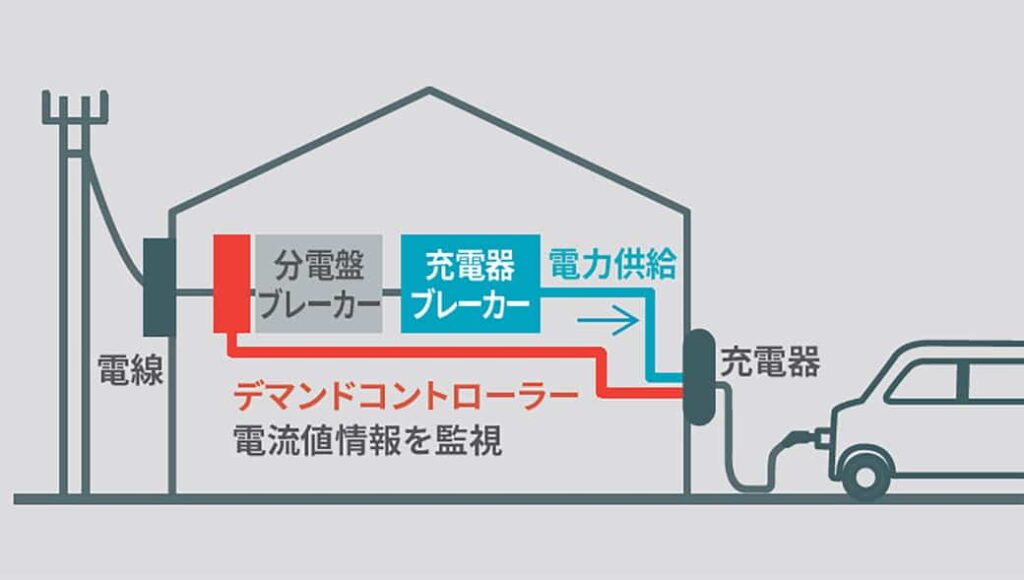 「トヨタ充電器用デマンドコントローラー」を販売店装着オプションとして設定。家全体の電気使用量を監視し、ブレーカーが落ちないように充電器の出力をリアルタイムで調整。家電を使用しながら、同時に安心してクルマの充電ができる上に、契約電力容量(契約アンペア)を最適化できるため、毎月の電気料金の節約に貢献。