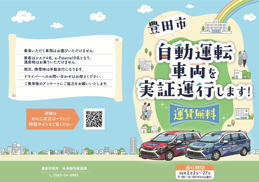 なお実証実験は2026年2月27日(金)まで継続して実施さつれる。豊田市では、「この機会に、未来の移動手段として期待される自動走行車両をぜひ実際に体験して頂き、ご意見やご感想をお寄せください」と話している。