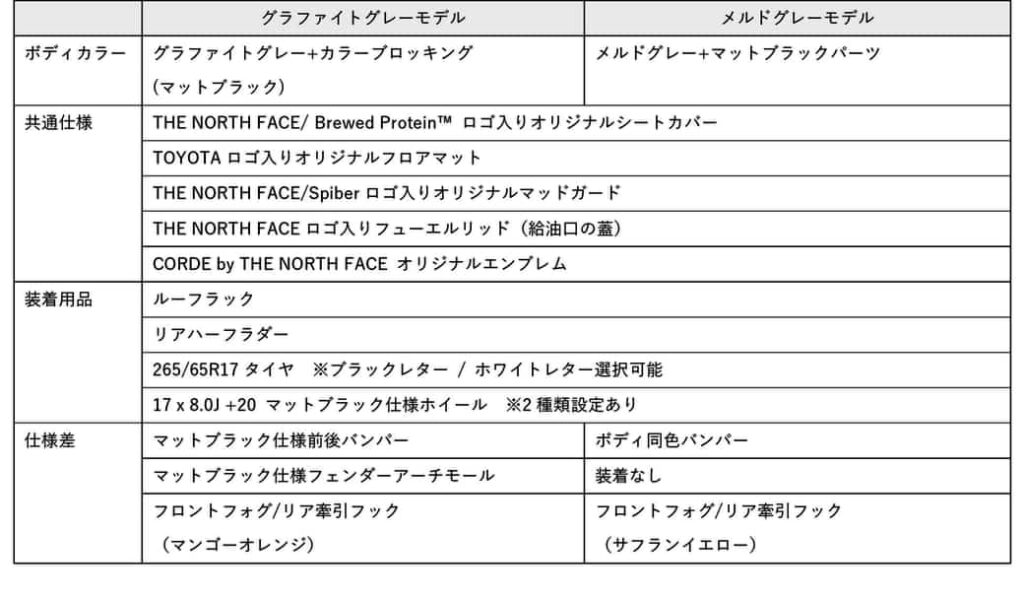 また「THE NORTH FACE」のプロダクトからインスピレーションを受けた外装カラーで自然や都会のシーンに違和感なく収まりながらも存在感を感じる一台として仕上げられた。