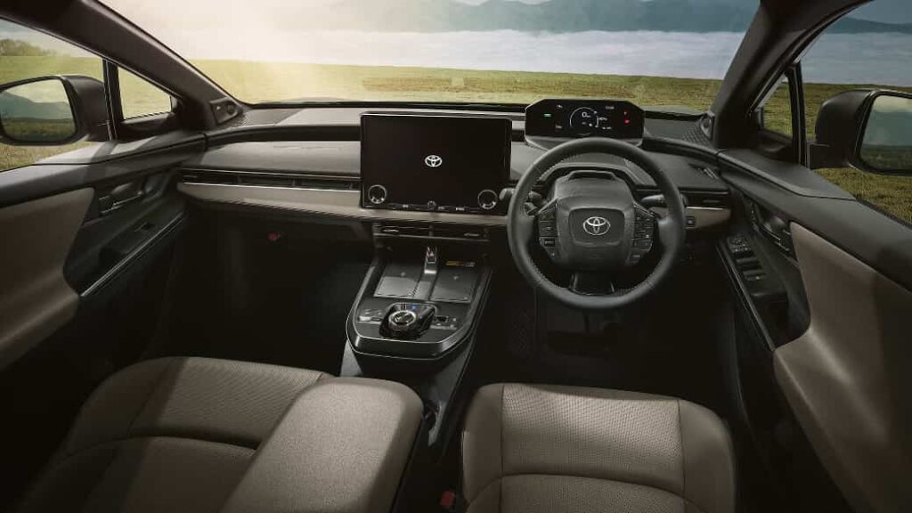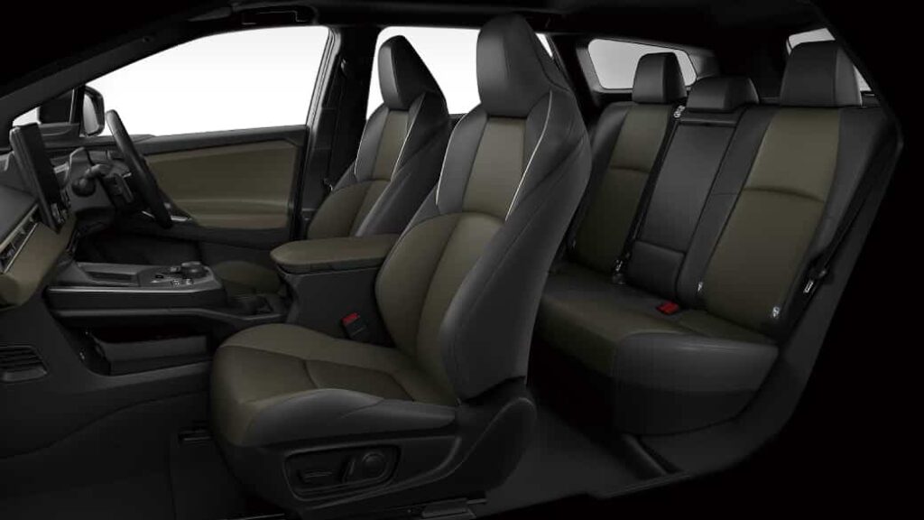 bZ4X Touringの世界観を提供する2種類のインテリアカラー。上質な室内空間を演出する「ブラック」を標準色とし、モダンな空間にアウトドアテイストを添える「カーキ」も選択可能にした。