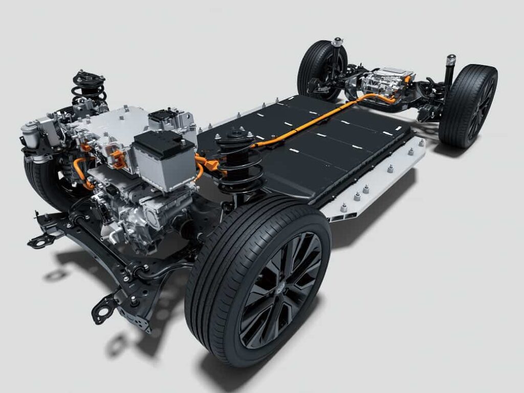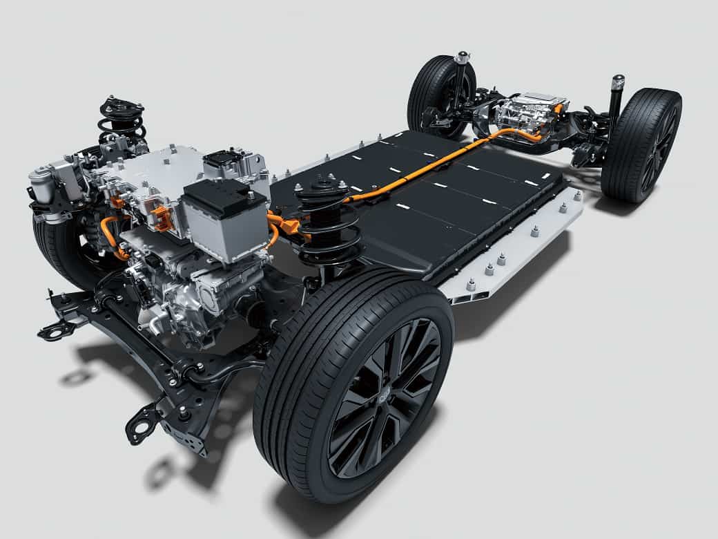 4WDモデルには、総電力量74.69kWhのリチウムイオンバッテリー搭載に合わせ、システム最高出力280kWとなる高出力eAxleを前後に採用した。0-100km/h加速性能4.6秒を可能とし、高速域に於いても伸びのある加速感と共に爽快な走りを実現した。