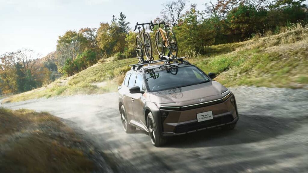 新型車bZ4X Touringは、bZ4Xの特長である「走る楽しさ(加速性能・悪路走破性)」と「日常使いの便利さ(ゆとりある航続距離)」を継承しつつ、アウトドアなど様々なシーンで活躍する、ゆとりある荷室空間を備えた新たなバッテリーEV(BEV)として誕生した。