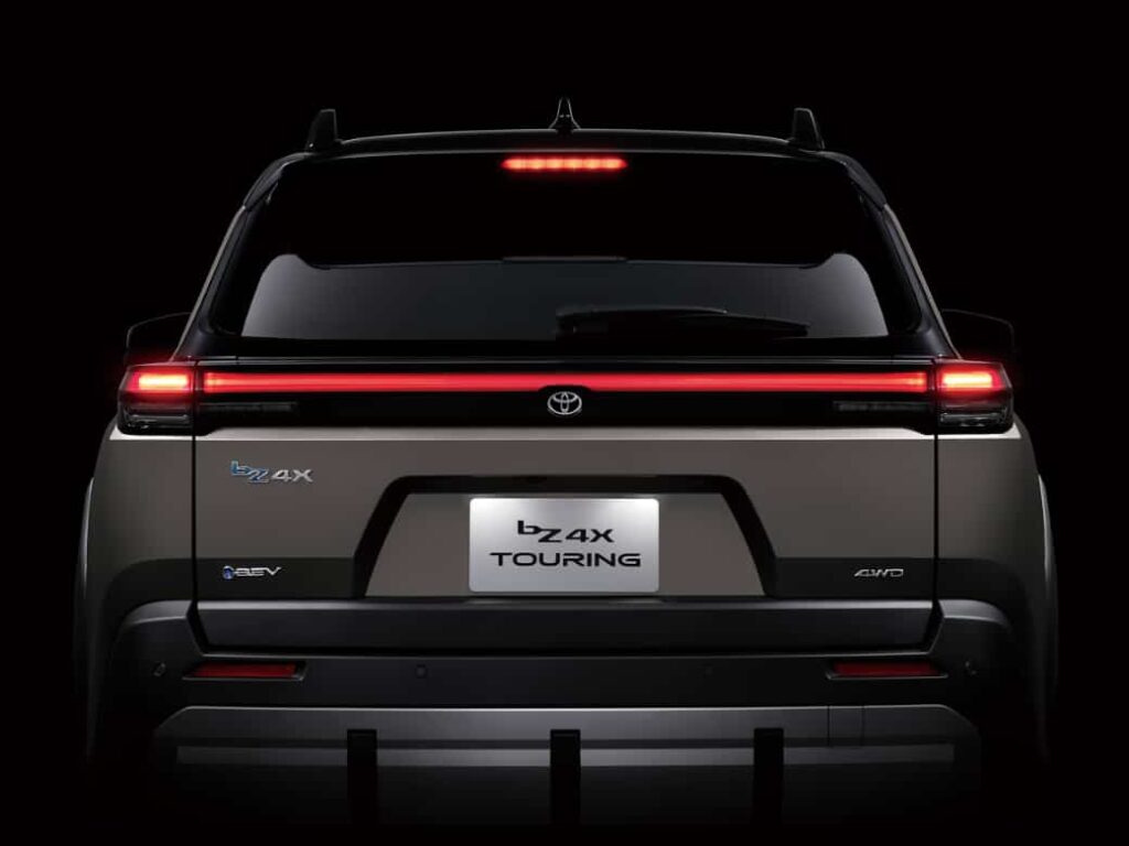 バックドア中央から両サイドへと横一文字に伸びる、力強い黒基調のLEDリヤコンビネーションランプ(テール・ストップ・バックアップ・ターン)を採用。テールランプとストップランプの一筋の輝きが、bZ4X Touringの存在感を一段と強調させた。