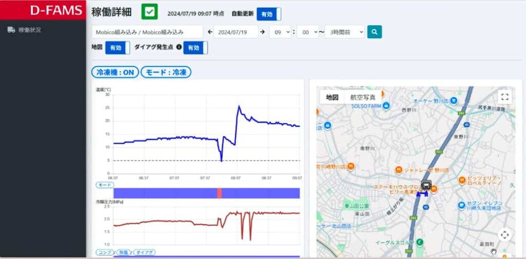 また、運用面での負担軽減を目的として、IoTサービス『D-FAMS』のオプションサービス設定を検討しているという。これによりD-FAMSは車両の位置情報や温度データなどを遠隔で管理できるようになる。またD-mobicoの送風停止や冷媒漏れ等の異常を検知することで、トラブルの原因特定や計画的な車両運行に貢献することを目指している。