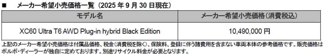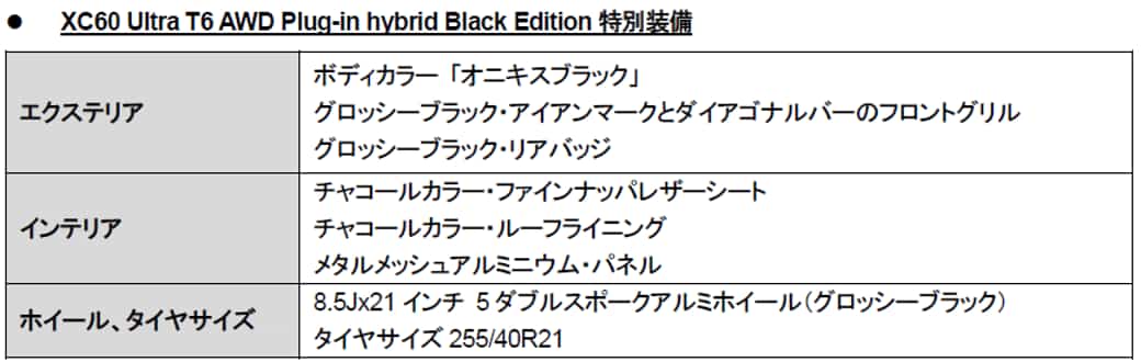 ボルボ・カー・ジャパン(本社:東京都港区、代表取締役社長:不動奈緒美)は、特別仕様車XC60 Ultra T6 AWD Plug-in hybrid Black Editionを9月30日より発売開始する。