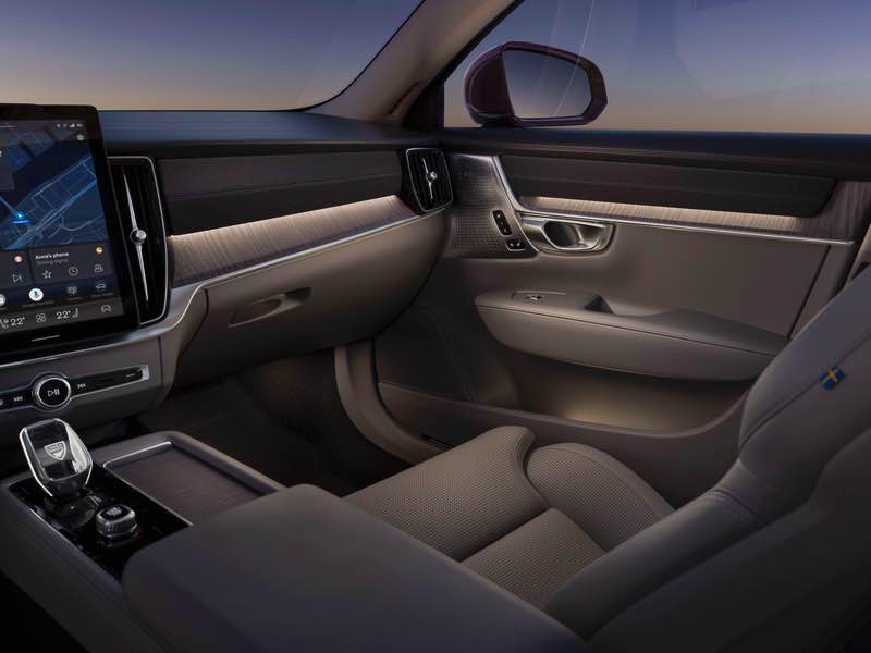 対してリアでは、新しいテールライトが全体のデザインにシームレスに統合され、統一感のある外観を作り出しています。更にS90には、新しい彫刻的なボンネット、フロントバンパー、フロントウィングが装備されています。